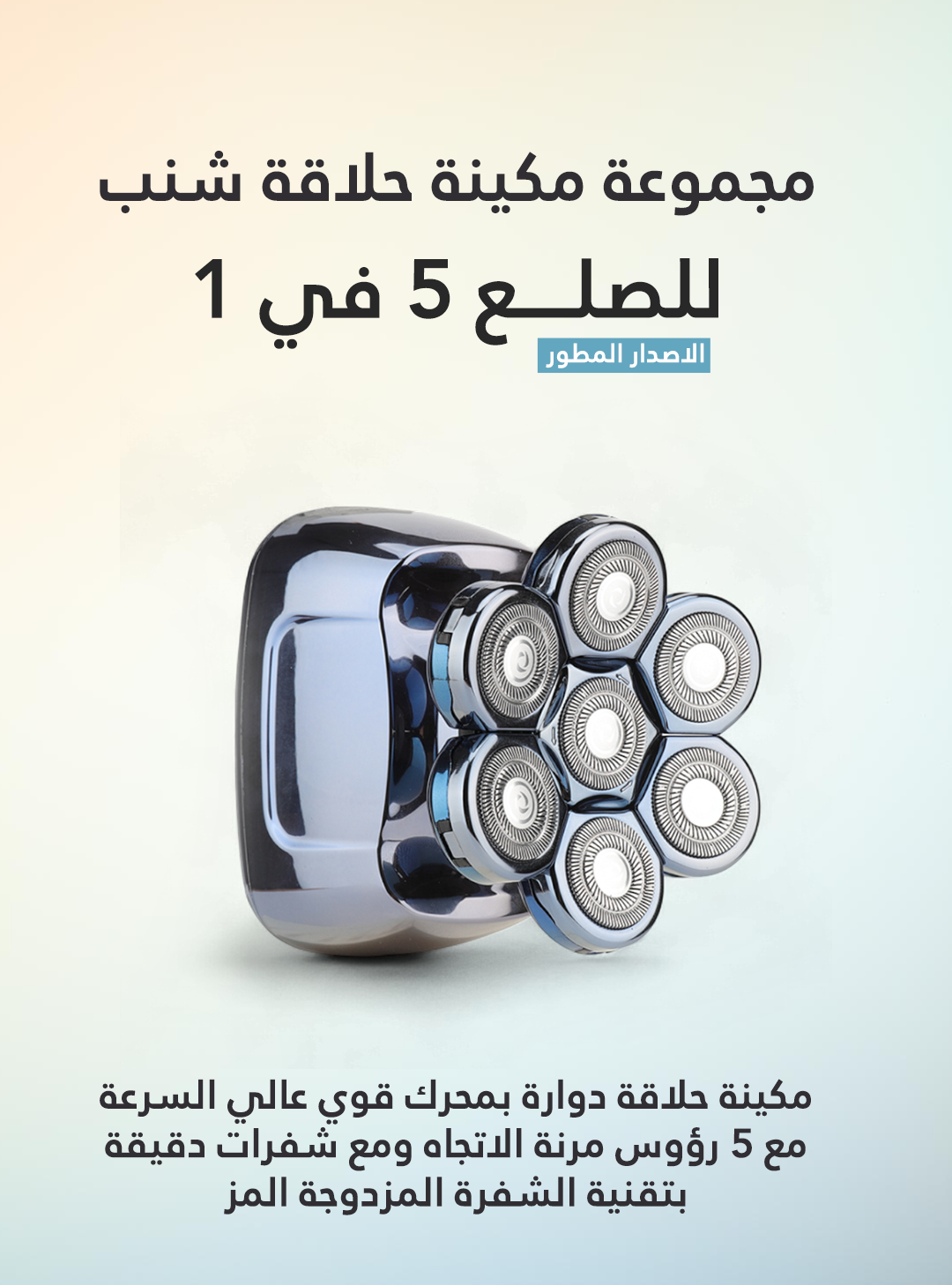 مجموعة مكينة حلاقة شنب للصلع 5 في 1 للرجال الاصدار المطور - SHANAB Electric Head Shavers for Bald Men 5-in-1